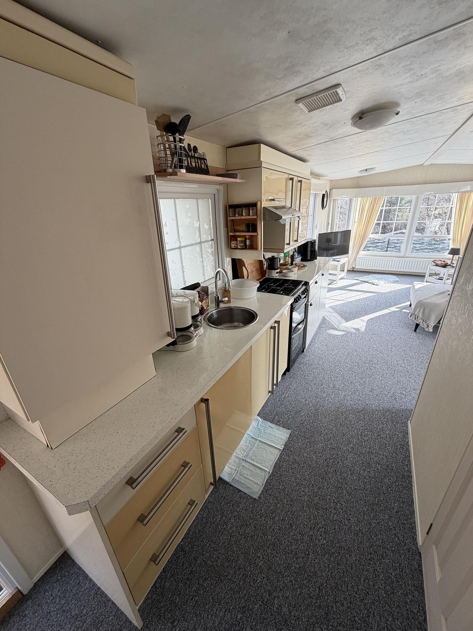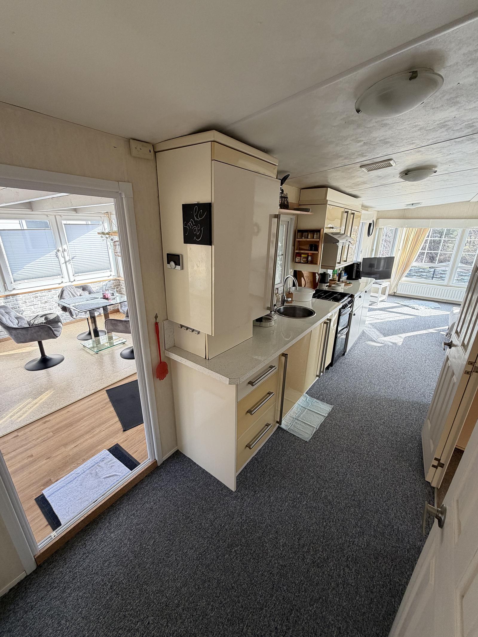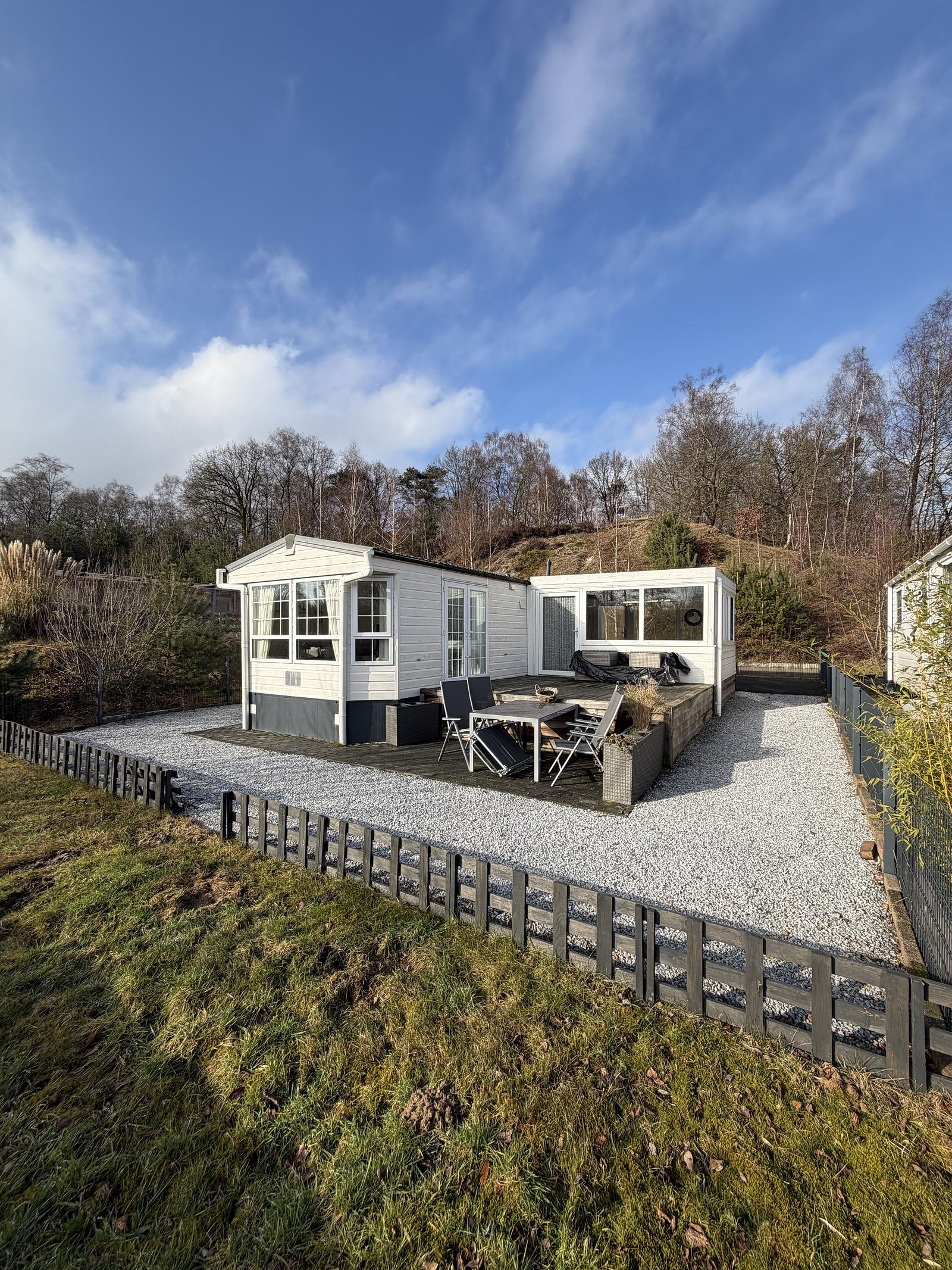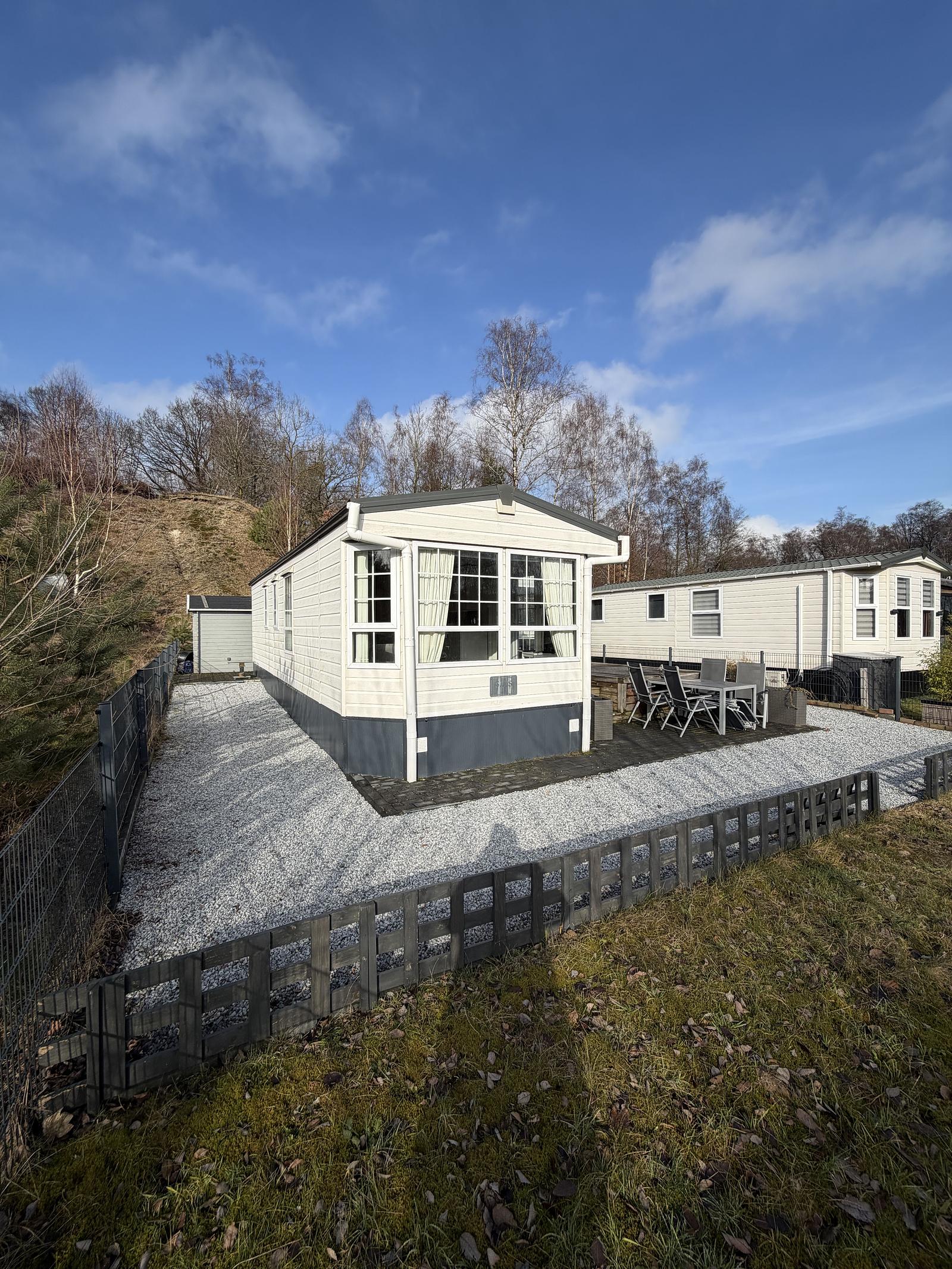 Suchen Sie einen komfortablen Ort, an dem Sie sich vollkommen entspannen können? Dieser gut gepflegte L-förmige Mobilheim bietet Platz, Privatsphäre und eine wunderschöne Lage in erhöhter Lage mit weitem Blick. Ideal als Zweitwohnsitz oder herrlicher Urlaubsort!
