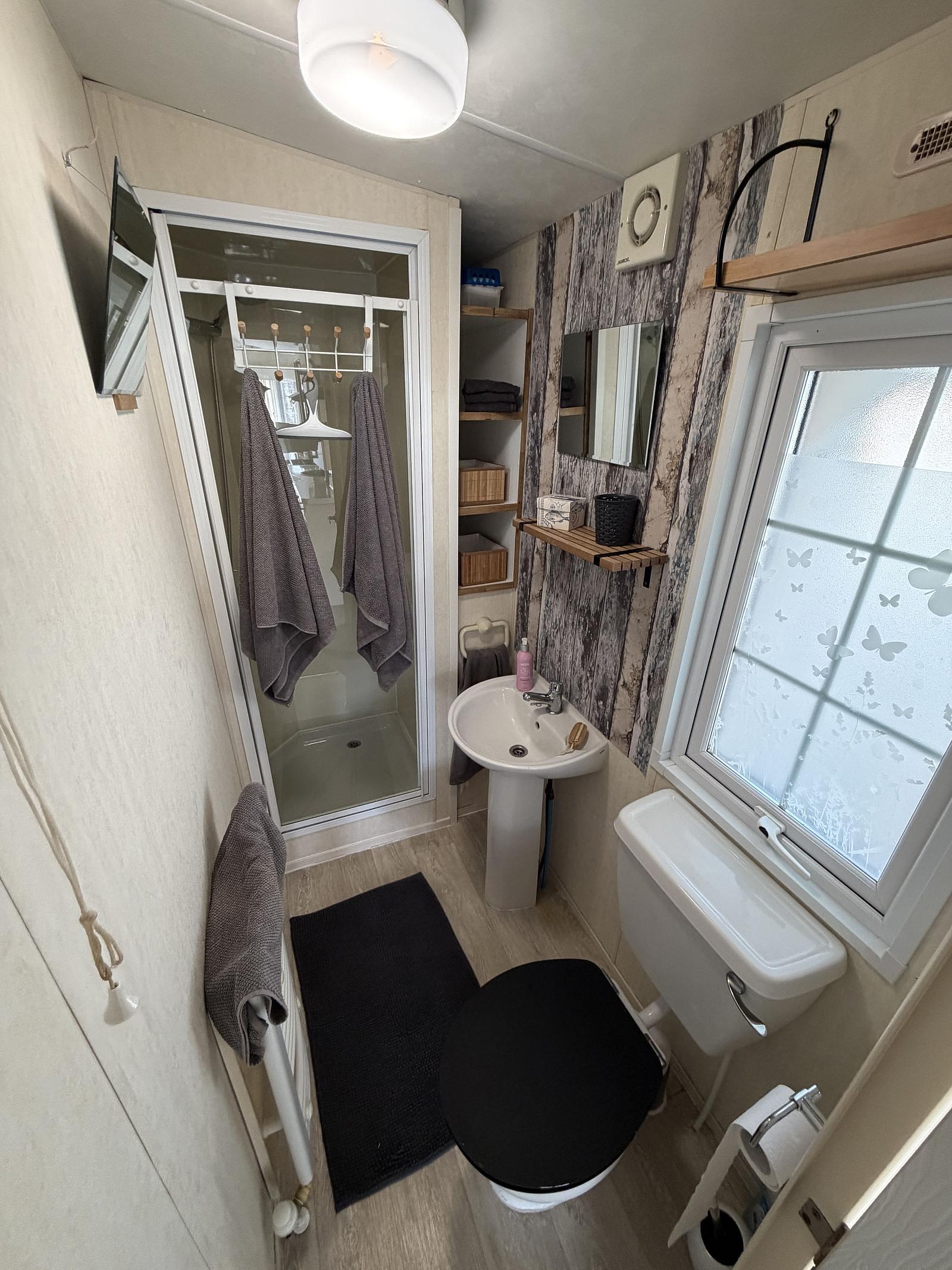 Dieses Mobilheim verbindet Komfort, Privatsphäre und Leben im Freien. Die großzügige Terrasse lädt dazu ein, die frische Luft und die langen Sommertage in vollen Zügen zu genießen. Dank der ruhigen Lage ist dies ein idealer Ort, um dem Alltagstrubel zu entfliehen.
