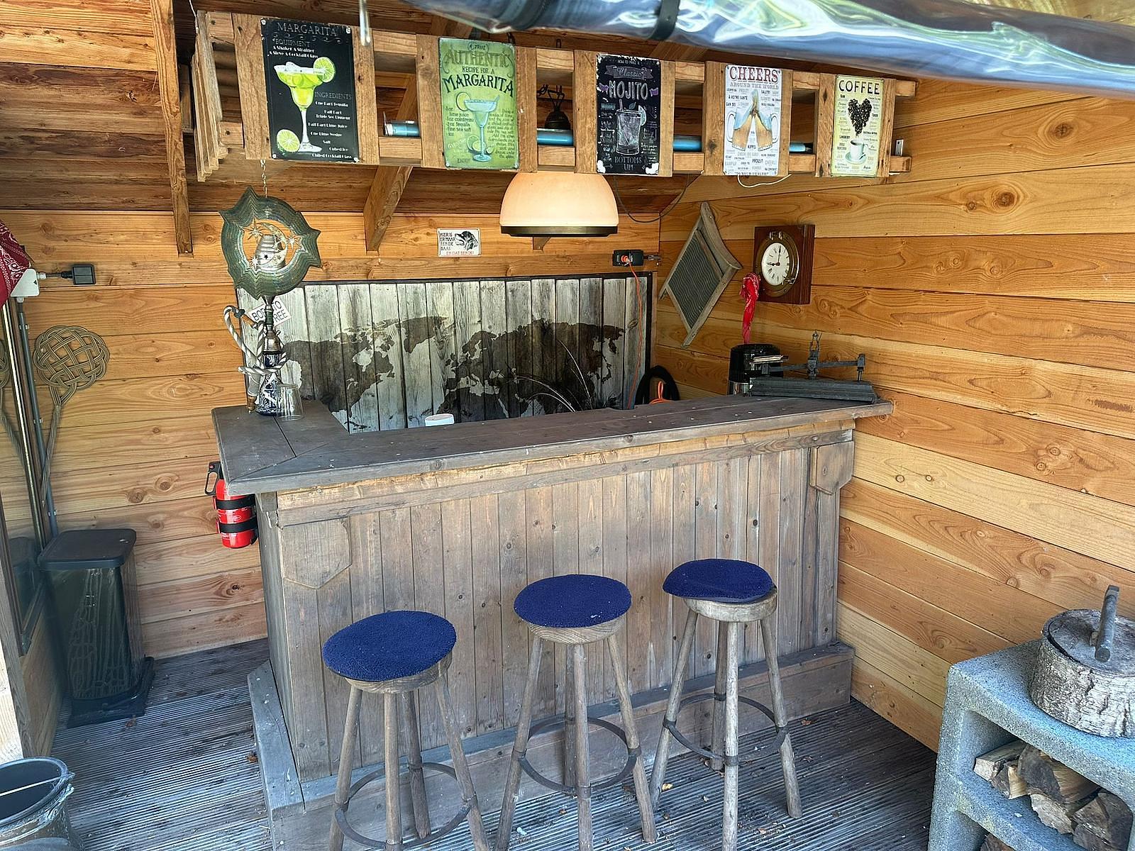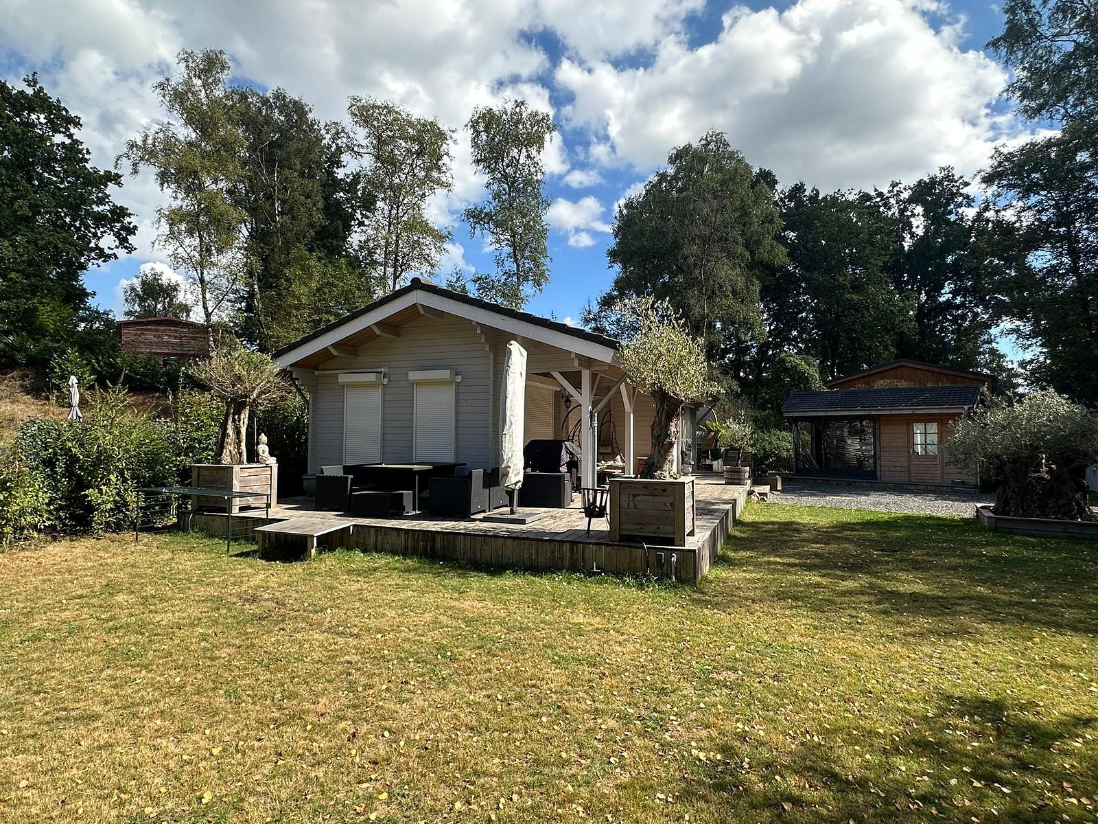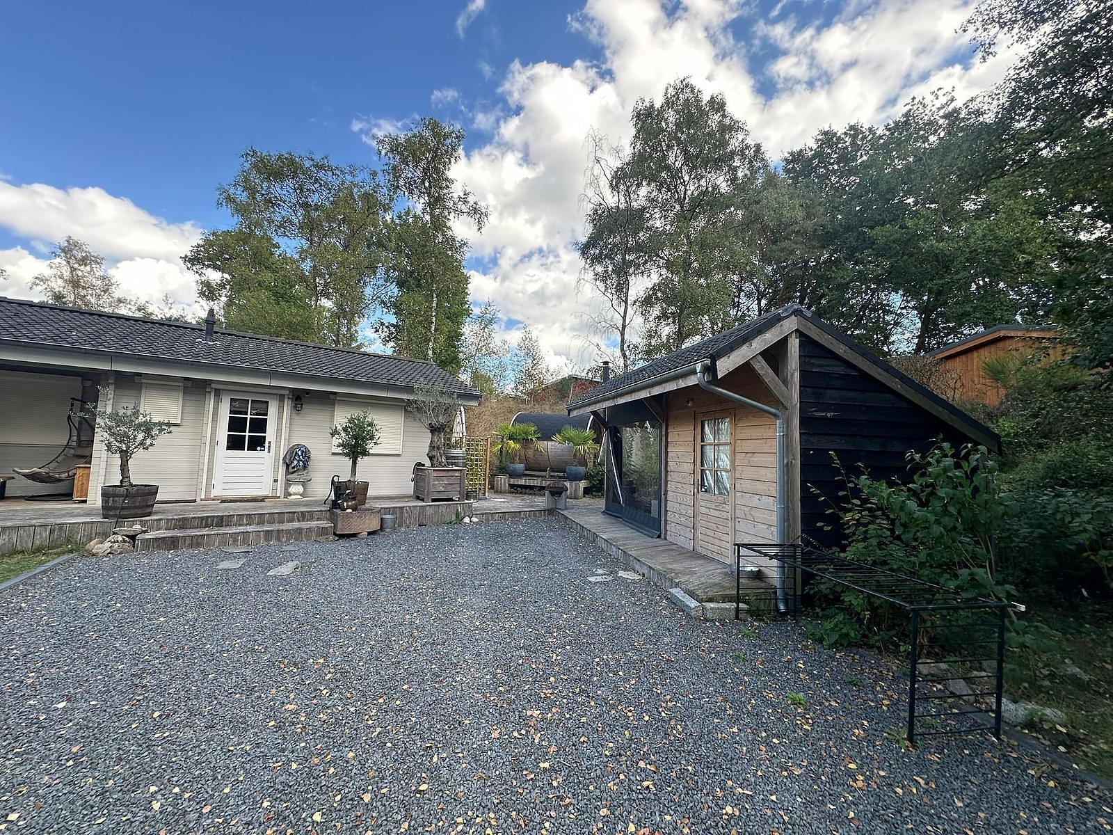 Daarnaast een extra blokhut van ca. 20 m², deels schuur en deels afsluitbare verwarmbare bar/buitenkeuken.