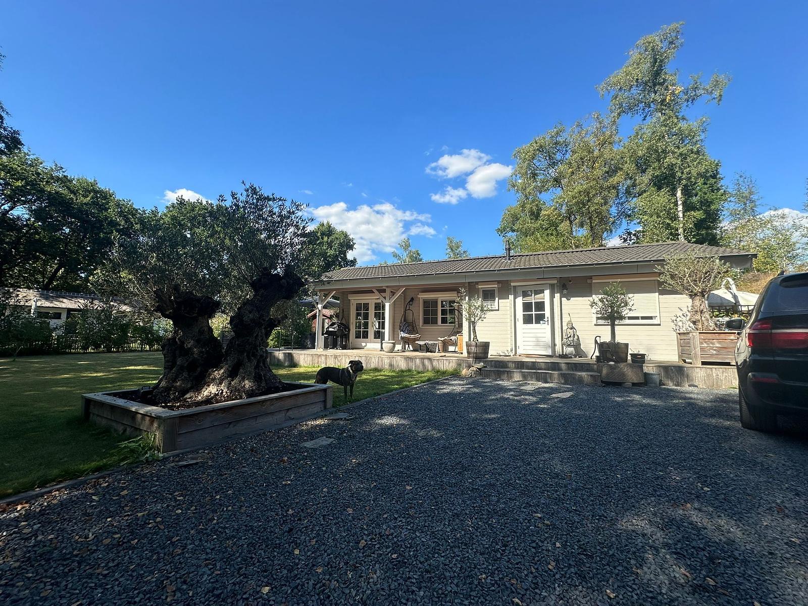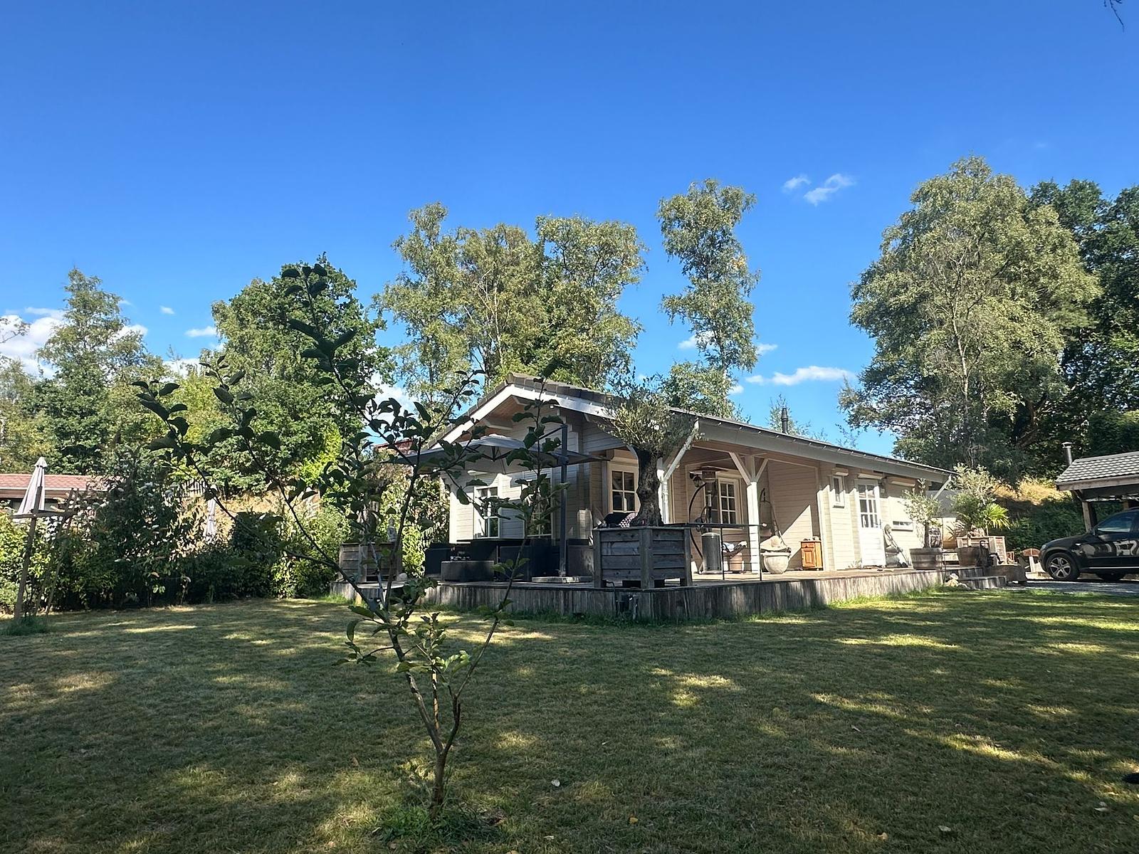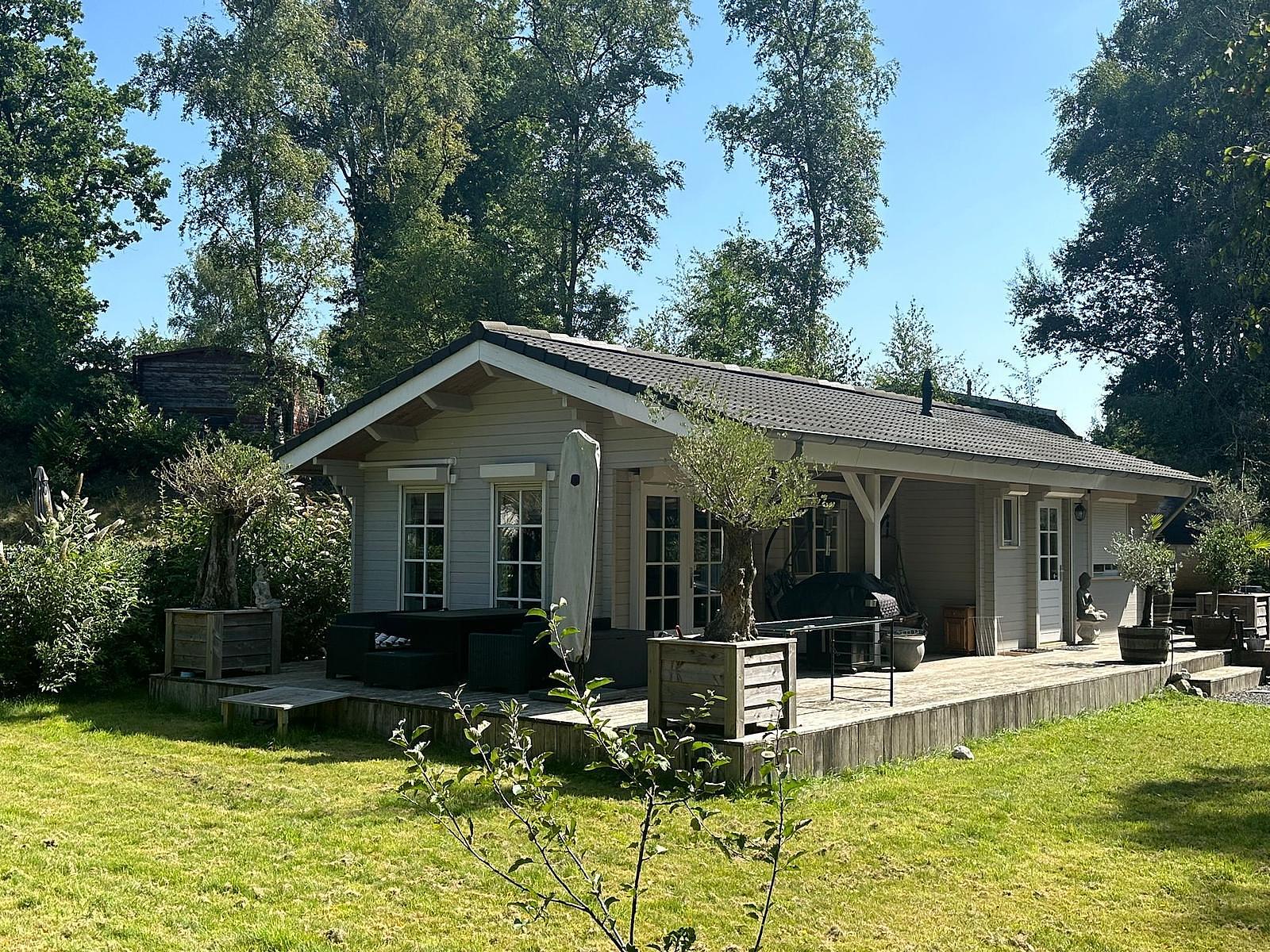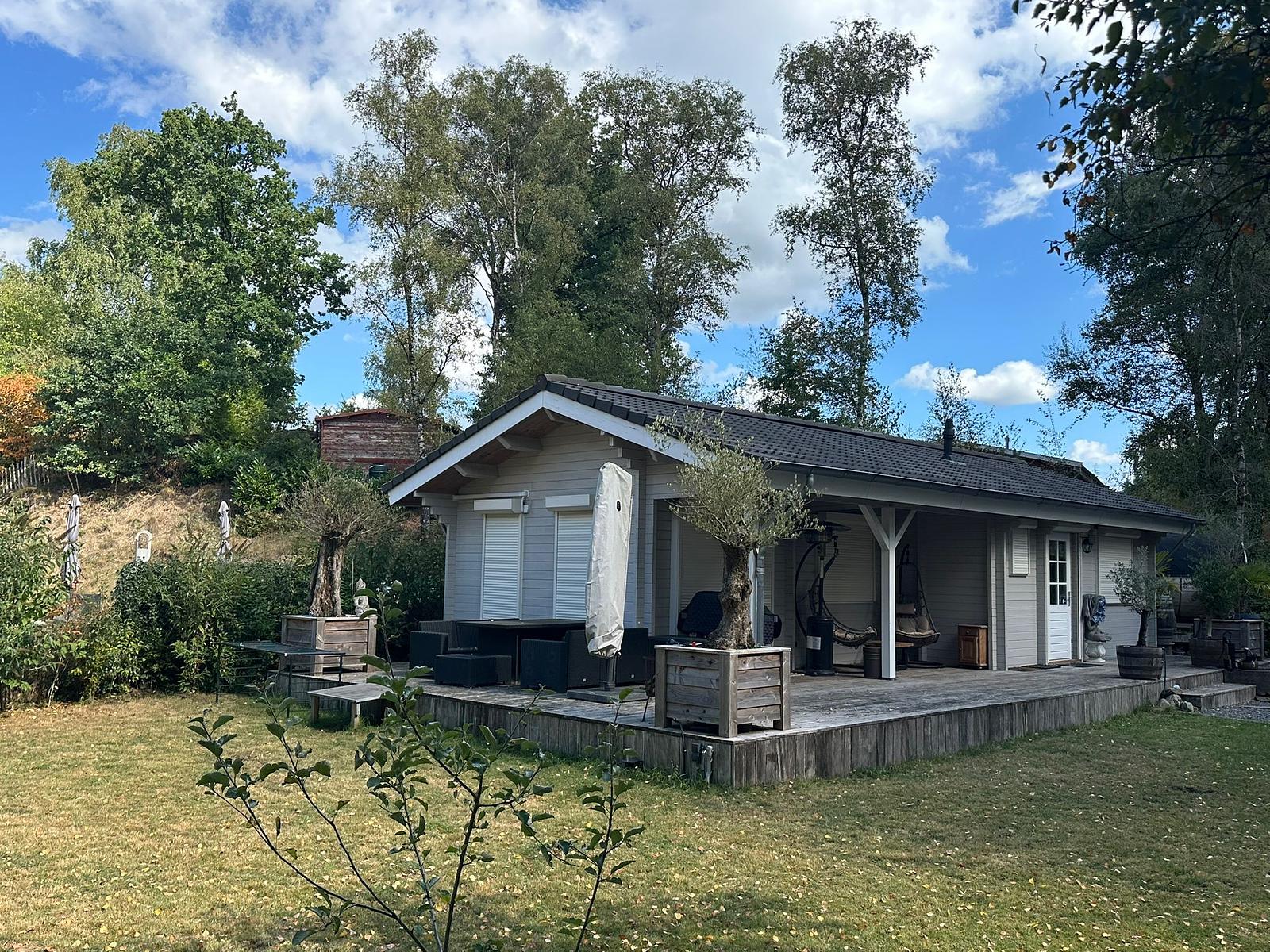 Daarnaast een extra blokhut van ca. 20 m², deels schuur en deels afsluitbare verwarmbare bar/buitenkeuken.